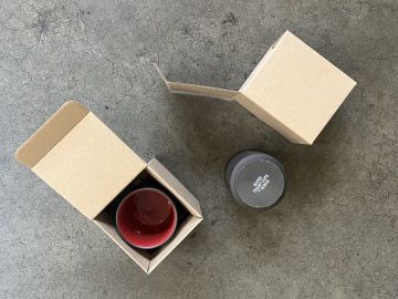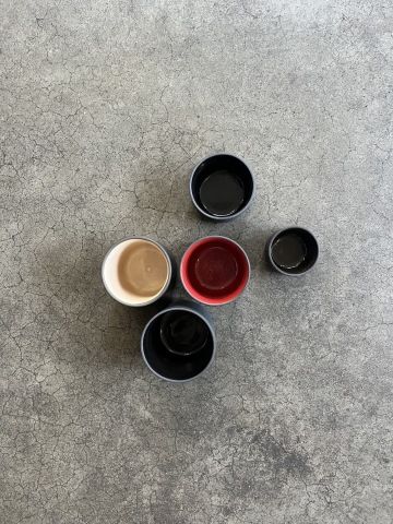 Barva vnitřní glazury je tentokrát béžová a černá, jako první a poslední verze barových hrnků, a v odstínu červené, který používala kavárna ve svém logu a interiéru.
